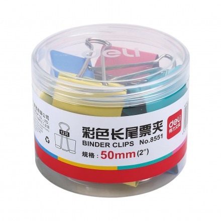 得力8551-1#彩色長尾票夾51mm(筒裝)(混)(12只/筒)